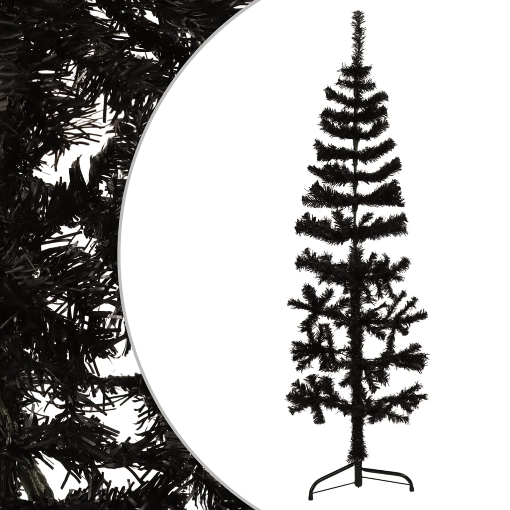 Mākslīgā Ziemassvētku Egle Ar Statīvu, Pusapaļa, Melna, 180 Cm Vidaxl