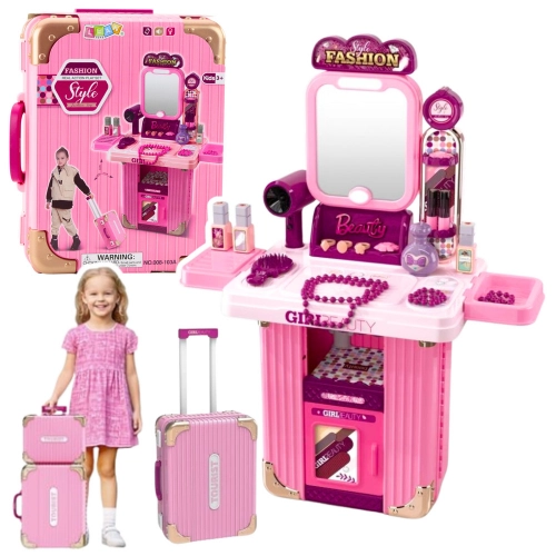 Dressing Table Makeup Set in a Suitcase Accessories 2 in 1 Pink