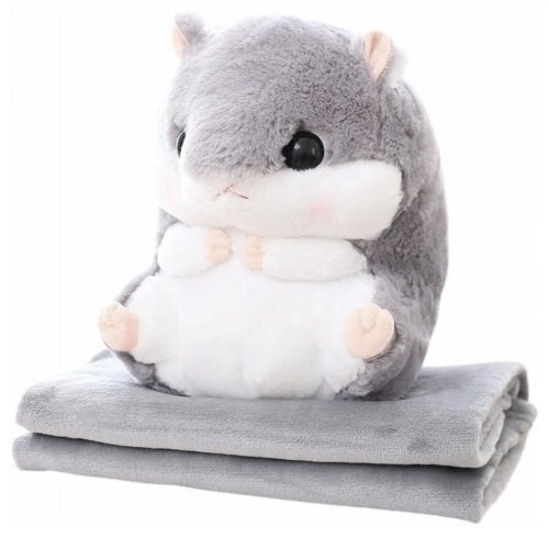 Plush Hamster Hand Warmer Blanket 190 x 100 cm 3in1 Gray 35cm